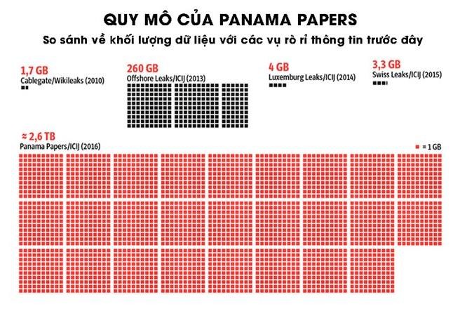 “Hồ sơ Panama” bao gồm khoảng 11,5 triệu trang tài liệu, tương đương 2,6 terabyte dữ liệu, nhiều hơn cả toàn bộ dữ liệu từ các vụ rò rỉ tài liệu mật lớn khác trước đây là Wikileaks, Offshore Leaks, Lux Leaks và Swiss Leaks. Hồ sơ này, bao gồm email, tập tin PDF, tập tin hình ảnh liên quan đến 214.000 công ty nước ngoài lập ra để trốn thuế và rửa tiền từ giữa thập niên 1970 đến năm 2016, đã được tờ báo “Süddeutsche Zeitung” chia sẻ với Hiệp hội Quốc tế các nhà báo điều tra (ICIJ) và hơn 100 tờ báo ở gần 80 quốc gia.