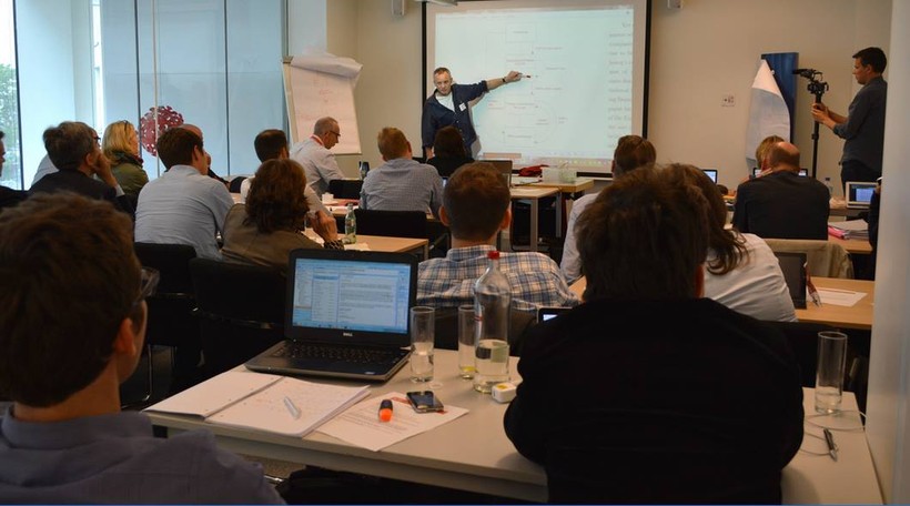 Các thành viên ICIJ tại Châu Âu trong một cuộc họp ở Brussels, Bỉ