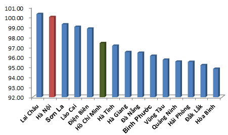 Lai Châu và Hà Nội là hai địa phương có mức giá cao nhất cả nước trong năm 2015,trong đó Lai Châu là tỉnh có chỉ số giá sinh hoạt đắt nhất cả nước. Các tỉnh Điện Biên, Sơn La, Lào Cai và Thành phố Hồ Chí Minh cũng là những địa phương có mức giá chung khá cao, vị trí “đắt đỏ” của các tỉnh này khá tương đồng với năm 2014.