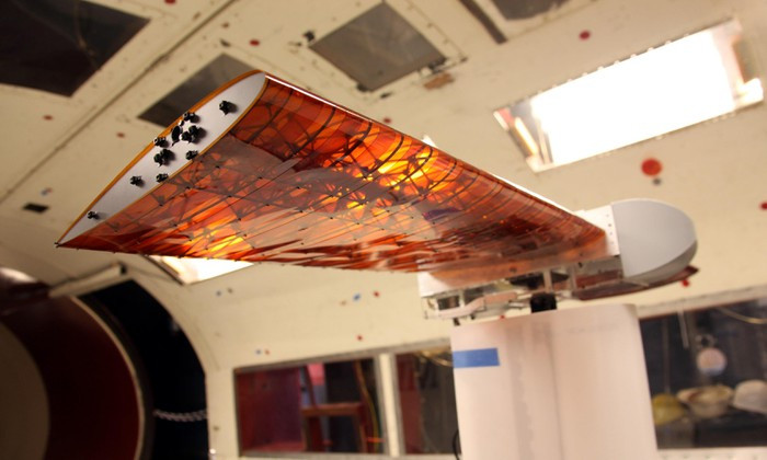 NASA đang theo đuổi nhiều ý tưởng về cánh máy bay có khả năng thay đổi trạng thái ngay khi đang bay, trong đó có dự án Cánh máy bay Thích nghi Tùy biến (SAW). Năm 2018, NASA đã cho thử nghiệm máy bay không người lái Ptera thuộc dự án này, sử dụng vật liệu có khả năng "ghi nhớ" hình dạng. Máy bay có khả năng lật cánh từ 0 - 70 độ khi đang bay. Ảnh: NASA.