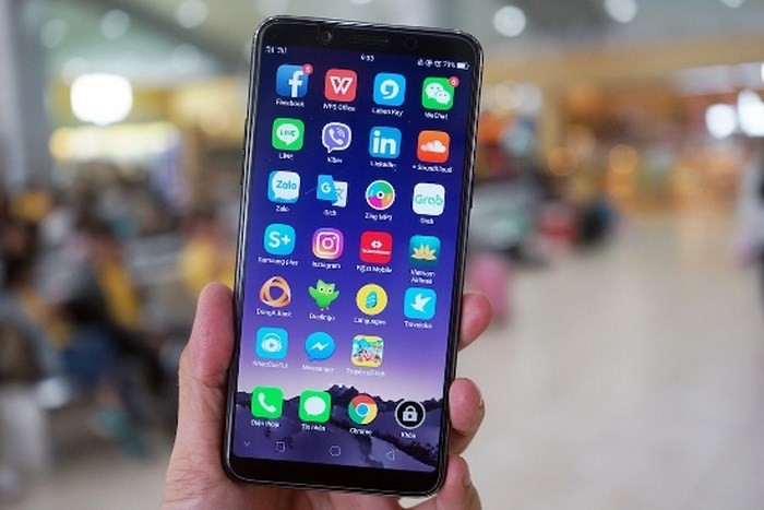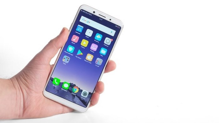 Mặt trước của Oppo F5 nổi bật với màn hình viền mỏng tỷ lệ siêu rộng 18:9 với tỷ lệ màn hình/mặt trước của máy là 78,1%. Chính vì vậy, kích cỡ thực tế của Oppo F5 dù có màn hình 6 inch nhưng chỉ tương đương các máy có màn hình 5.5 inch nên dễ cầm bằng một tay.