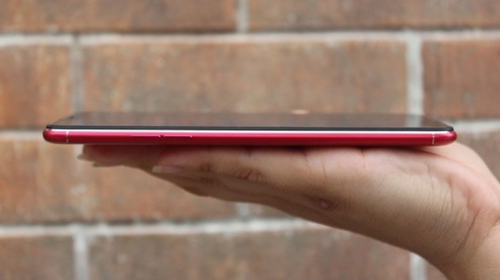Dù vậy khá tiếc khi vỏ nhựa ở mặt lưng của Oppo F5 không ôm sát mép màn hình, nên phần màn hình bị lồi hẳn lên trên khung máy, không mang đến cảm giác liền mạch và cầm bị cấn tay, ngoài ra kính màn hình cũng không cong vát 2.5D nên hơi bị cấn khi vuốt về hai bên cạnh.