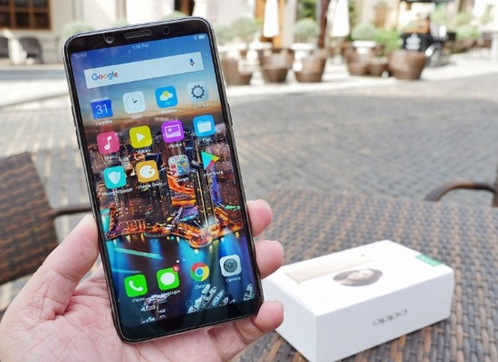 Oppo F5 là thiết bị đầu tiên của hãng có thiết kế màn hình tràn viền với kích thước 6 inch, độ phân giải Full HD+ (1080 x 2160 pixel), tỷ lệ 18:9 và mật độ điểm ảnh đạt 402 ppi.