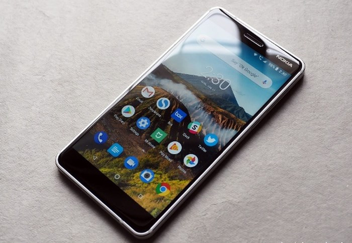So với Oppo F5 thì mặt trước của Nokia 6 2018 nhìn không đẹp bằng, dù viền hai bên màn hình khá mỏng nhưng viền trên và dưới màn hình lại khá dày. Nokia cũng đã loại bỏ phím cứng home ở mặt trước và chuyển cảm biến vân tay ra mặt sau như đối thủ.