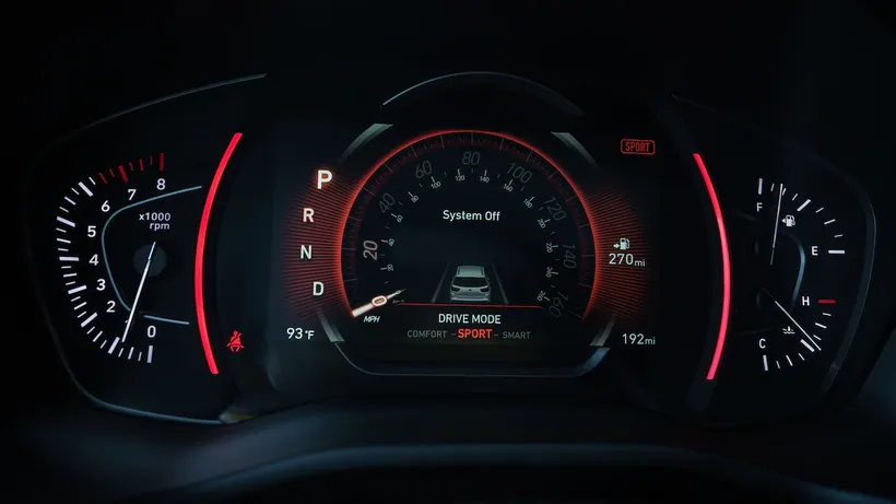 Hộp số tự động 8 cấp của Hyundai Santa Fe 2019 thay đổi nhanh chóng và nói chung là khá trơn tru, hạn chế được quá trình chuyển số giật khục khi chạy trên đường đèo.