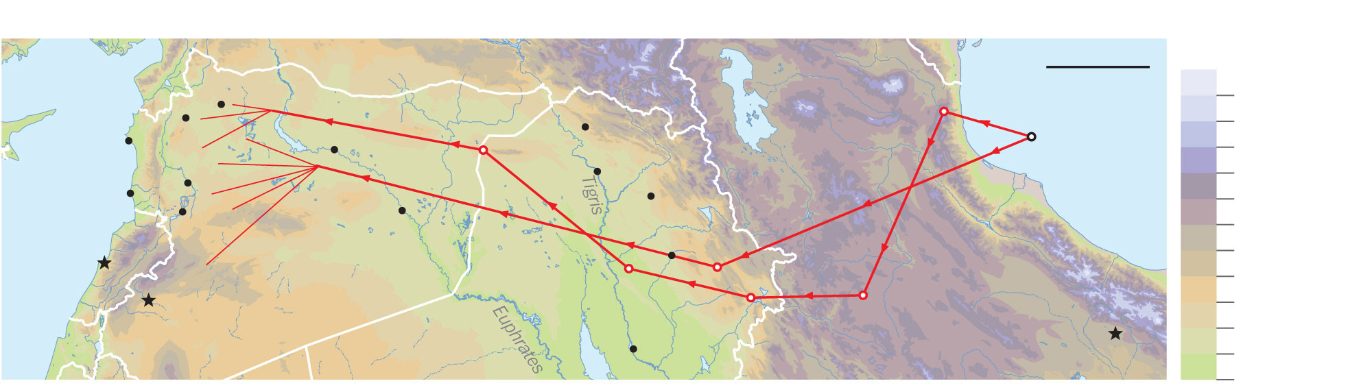 Sơ đồ đường bay của tên lửa hành trình Calibr trên đất liền