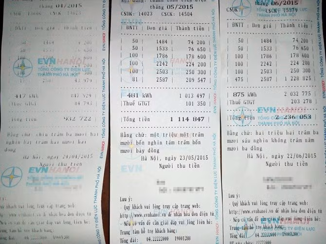 Tương tự, chị Nguyễn Thị Huệ (Minh Khai, Hai Bà Trưng) cũng chia sẻ, hoá đơn tiền điện chị phải thanh toán cho nửa cuối tháng 5 và nửa đầu tháng 6 lên đến hơn 900.000 đồng, gấp đôi so với kỳ sử dụng trước đó trong khi việc sử dụng điện trong gia đình gần như không thay đổi.