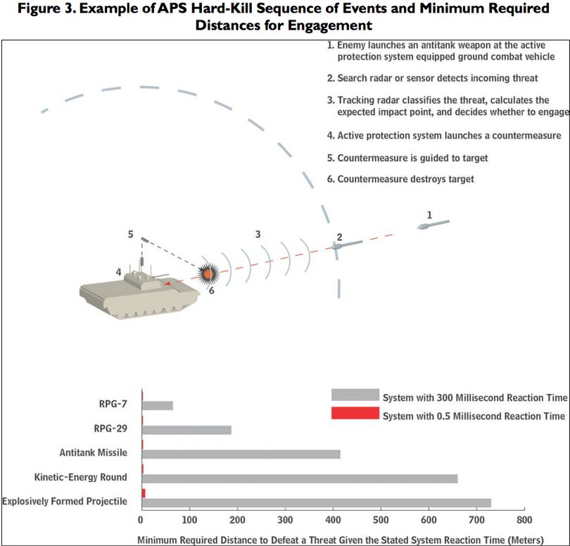 Business Insider cho biết các hệ thống APS sử dụng radar để phát hiện các vũ khí chống tăng và vũ khí chống giáp, triển khai các biện pháp đối phó để tiêu diệt hoặc phá hủy chúng.