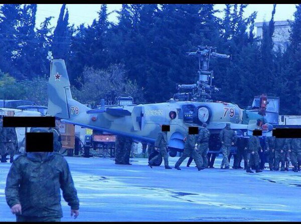 Trong suốt gần 6 tháng quân đội Nga trong cuộc xung đột Syria sử dụng chủ yếu là các máy bay trực thăng tấn công Mi-24 Hind. Đó là các máy bay trực thăng đã được nâng cấp và hiện đại hóa Mi-24P nhưng cũng đã lỗi thời. Điện Kremlin quyết định sử dụng các máy bay này trong cuộc xung đột trong khi vẫn giữ các máy bay trực thăng tấn công tiên tiến hơn Mi-28 Havoc và Ka-52 Alligator tại Nga. Rút lực lượng không quân chiến thuật phản lực, những chiếc trực thăng tiên tiến này được đưa đến Syria.
