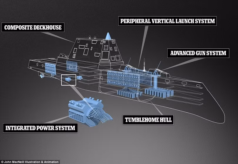Chi phí đóng chiến hạm khổng lồ này là 4,4 tỷ USD. Việc thử nghiệm sẽ kéo dài mấy tháng. Dự kiến, USS Zumwalt sẽ được bàn giao cho Hải quân Mỹ vào năm 2016.