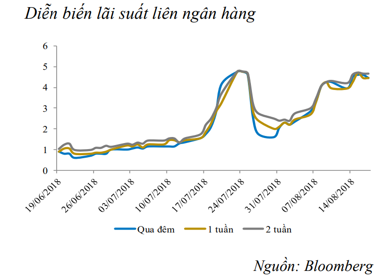Việc tăng trở lại của lãi suất liên ngân hàng cho thấy thanh khoản hệ thống trong 2 tuần qua có dấu hiệu căng thẳng trở lại. Tuy nhiên, có thể thấy độ dốc của đợt gia tăng lần này đã không còn lớn như trước đó.
