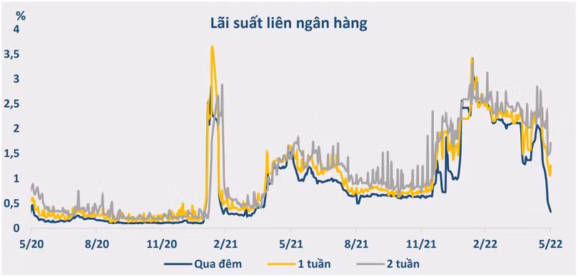 “Diễn biến này đã khiến cho lãi suất suất trên thị trường liên ngân hàng có diễn biến giảm mạnh, lãi suất liên ngân hàng kỳ hạn qua đêm đã giảm xuống mức thấp nhất kể từ tháng 4/2021 tới nay”, BVSC cho hay.