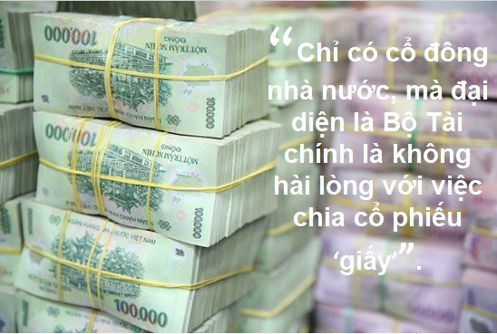 Chỉ có cổ đông nhà nước, mà đại diện là Bộ Tài chính là không hài lòng với việc chia cổ phiếu “giấy”. Lý do vì sao thì cả thị trường biết cả. Bộ Tài chính muốn VietinBank, Vietcombank, BIDV chia cổ tức tiền mặt để phần của Nhà nước được nộp về ngân sách.