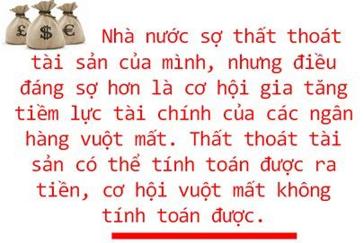 Tiền nhà nước ở BIDV, VietinBank, Vietcombank, Agribank, ở đâu cũng là tiền ngân sách cả. Điều tiết nguồn vốn khổng lồ ấy sao cho khéo để tiền đẻ ra tiền và ngân sách có lợi nhất là trách nhiệm của Bộ Tài chính. NHNN ủng hộ các ngân hàng quốc doanh và nửa quốc doanh chia cổ tức bằng cổ phiếu, nhưng Bộ Tài chính mà lắc đầu, thì NHNN cũng đành “bó tay”.