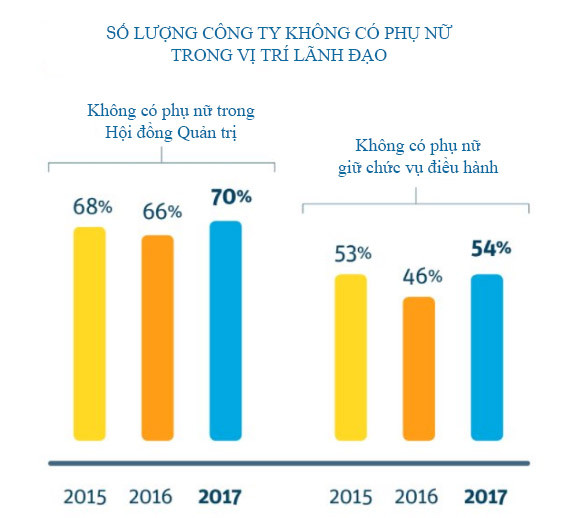 Theo Ngân hàng Silicon Valley, hơn 70% trong số 941 công ty khởi nghiệp được khảo sát năm 2017 cho biết họ không có thành viên nữ nào trong hội đồng quản trị. Con số này năm ngoái là 66%. Không chỉ thiếu vắng trong hội đồng quản trị, số lượng phụ nữ tham gia vào vị trí điều hành công ty cũng giảm đi trong năm 2017. Hơn một nửa số công ty được khảo sát cho biết các chức danh quản lý và điều hành công ty đang “vắng bóng” phụ nữ.