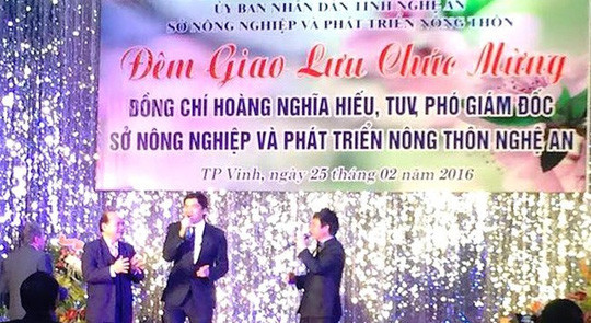 Tờ Người Lao động (NLĐ) dẫn lời bà Lương Thị Minh Hằng, Chánh văn phòng Sở NN & PTNT tỉnh Nghệ An xác nhận chiều 25-2, cơ quan này đã đặt 10 mâm tiệc, với khoảng 100 người tham dự - trong đó có nhiều cán bộ, nhân viên của Sở NN & PTNT, đại biểu và một số lãnh đạo huyện Yên Thành. "Một nhân viên nhà khách Nghệ An cho hay tiệc mừng tân Phó giám đốc Sở diễn ra với phông nền hoành tráng, người đặt tiệc là một nhân viên của Sở NN & PTNT" - bài báo của NLĐ cho hay