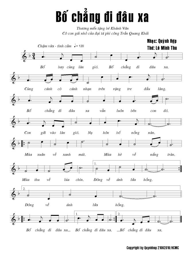 Lê Minh Thu, tác giả lời ca của hai bài hát Bố chẳng đi đâu xa và Bố em là phi công chia sẻ: "Điểm xuất phát để tôi viết lại chính là ký ức của tôi về cuộc nói chuyện với người sỹ quan là kỹ sư trên, về những gì bạn ấy kể về tình đồng đội, về sự lo lắng của những người lính dành cho nhau, về hai cục cao su chặn bánh máy bay kia, về sự chờ mong đồng đội chở về sau mỗi ngày huấn luyện....
