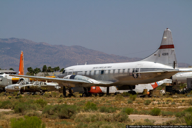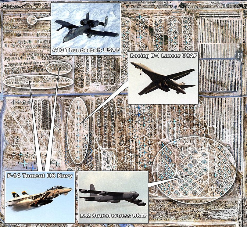 Bản đồ bao trùm toàn bộ 2600-mẫu Anh khu kho bảo niêm khổng lồ máy bay thuộc căn cứ không quân Davis-Monthan trên sa mạc Arizona, cách không xa thành phố Tucson, nơi có nhiều thế hệ máy bay quân sự được lưu trữ. Căn cứ được thành lập vào năm 1925, và vinh dự mang tên của hai phi công quân sự từ chiến tranh thế giới I - Samuel Davis và Oscar Monthan.