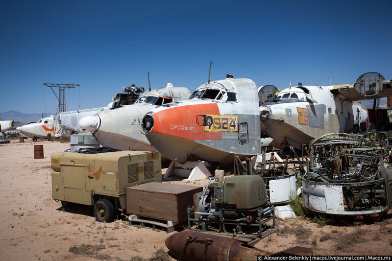 Tất nhiên, nghĩa địa máy bay này không phải là cái duy nhất trên thế giới, nó chỉ là cái lớn nhất trên thế giới với khoảng 4,400 chiếc máy bay các chủng loại. Máy bay đã từng phục vụ trên tàu sân bay phải được rửa sạch để loại bỏ muối biển. Các máy bay phải xả hết thùng nhiên liệu, để khô ráo, lướt qua dầu. Mọi vật liệu nổ, vũ khí đều bị tháo rỡ. Các đường ống dẫn được quấn lại bằng dây băng, thân máy bay sơn lại màu trắng để phản quang và giảm nhiệt độ bên trong dưới ánh nắng mặt trời. Các máy bay được niêm cất, bảo quản ở nhiều trạng thái khác nhau, đôi khi có những chiếc được bay trở lại sau một thời gian dài ngủ quên ở Boneyard.