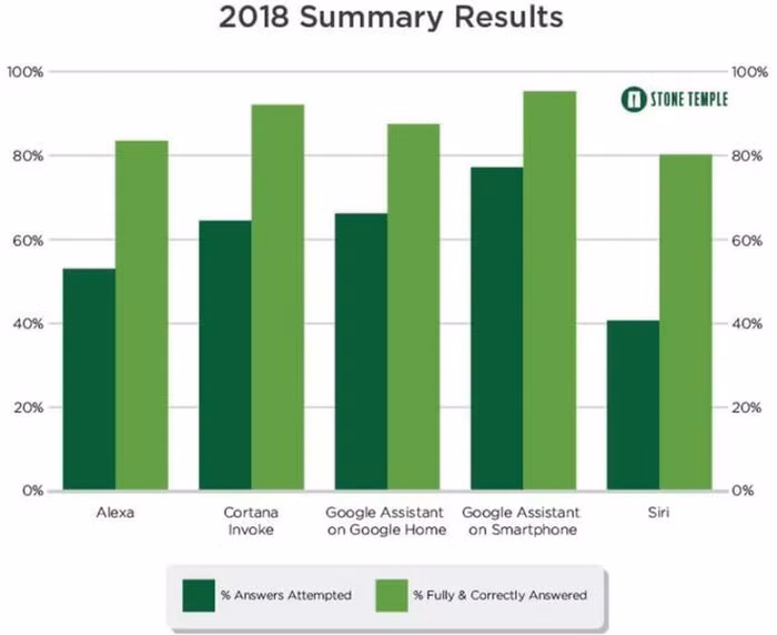 Theo kết quả thử nghiệm do công ty marketing kỹ thuật số Stone Temple công bố, Google Assistant đang là trợ lý ảo thông minh nhất trong số các đối thủ có mặt trên thị trường như Amazon Alexa, Apple Siri hay Microsoft Cortana.