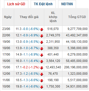 Điểm qua giá cổ phiếu JVC từ 10/6/2015 đến nay có thể thấy, cổ phiếu này đã 9 phiên giảm sàn và 1 phiên giảm nhẹ. Từ mức giá 21.200 đồng trước tin đồn, cổ phiếu JVC chỉ còn 11.300 đồng/cổ phiếu chốt phiên giao dịch ngày hôm qua. Điều này đồng nghĩa với việc, cổ đông nào không kịp “thoát hàng” cổ phiếu JVC từ sau biến cố đã mất phân nửa giá trị khoản đầu tư.