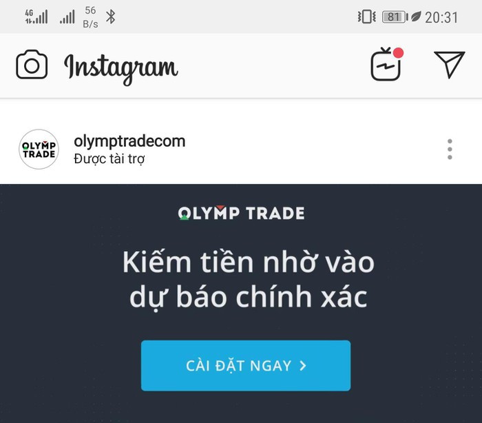 Trong phần điểm tin của trình duyệt Cốc Cốc, ứng dụng nhị phân Olymptrade xuất hiện như một bản tin.