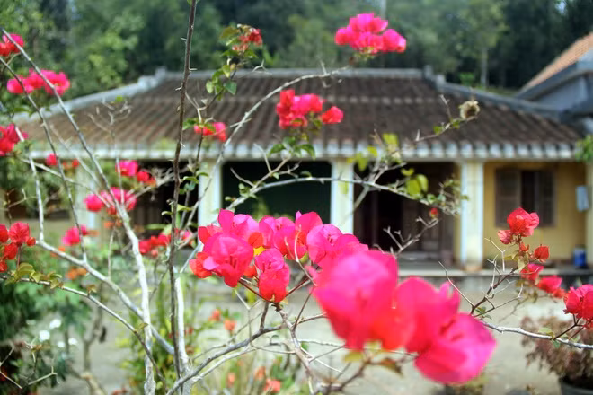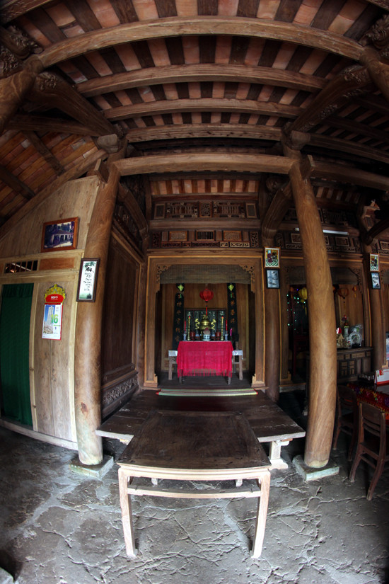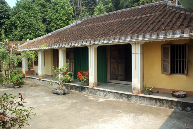 Ngôi nhà nằm ở lưng chừng một ngọn đồi, hướng ra cánh đồng lúa, cao hơn những nhà trong làng khoảng 50 mét. Con ngõ dẫn lên ngôi nhà nhỏ hẹp, một bên là bờ đá hàng trăm năm tuổi rêu phong phủ kín, một bên là hàng chè tàu được cắt tỉa kỹ càng.