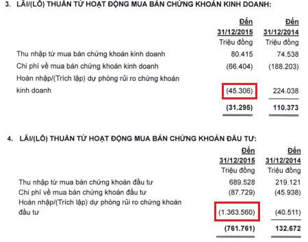 Theo các thông tin công bố trong báo cáo, ngân hàng này đã lỗ tới 993 tỷ đồng từ hoạt động mua bán chứng khoán đầu tư, chỉ tính riêng trong 3 tháng cuối năm. Lũy kế cả năm 2015, ACB lỗ 762 tỷ đồng từ hoạt động này.