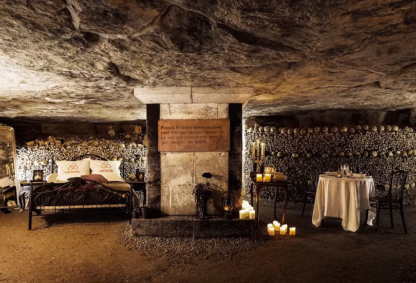Hầm mộ Paris là hầm mộ tập thể lớn nhất thế giới, mỗi năm có khoảng hơn 500.000 lượt khách đến đây tham quan. Airbnb dự định cải tạo hầm mộ này thành phòng nghỉ tạm thời trong khoảng thời gian từ ngày 31-10 đến ngày 1-11. Hai vị khách dũng cảm được ngủ một đêm miễn phí tại "phòng nghỉ sang trọng rùng rợn", tuy nhiên hai vị khách này buộc phải "đủ can đảm".