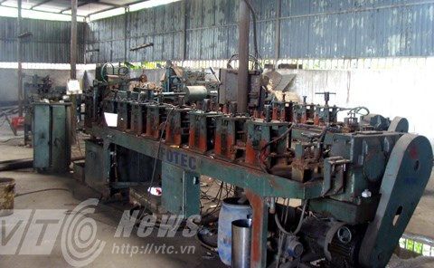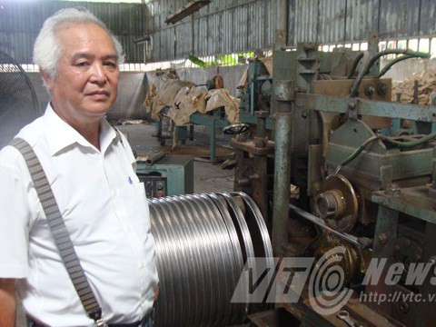 Ông Khánh bên chiếc máy tự động sản xuất vành xe đạp inox.