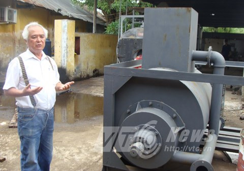 Ông Khánh bên chiếc máy nghiền sắn thành thức ăn gia súc tự động do ông chế tạo