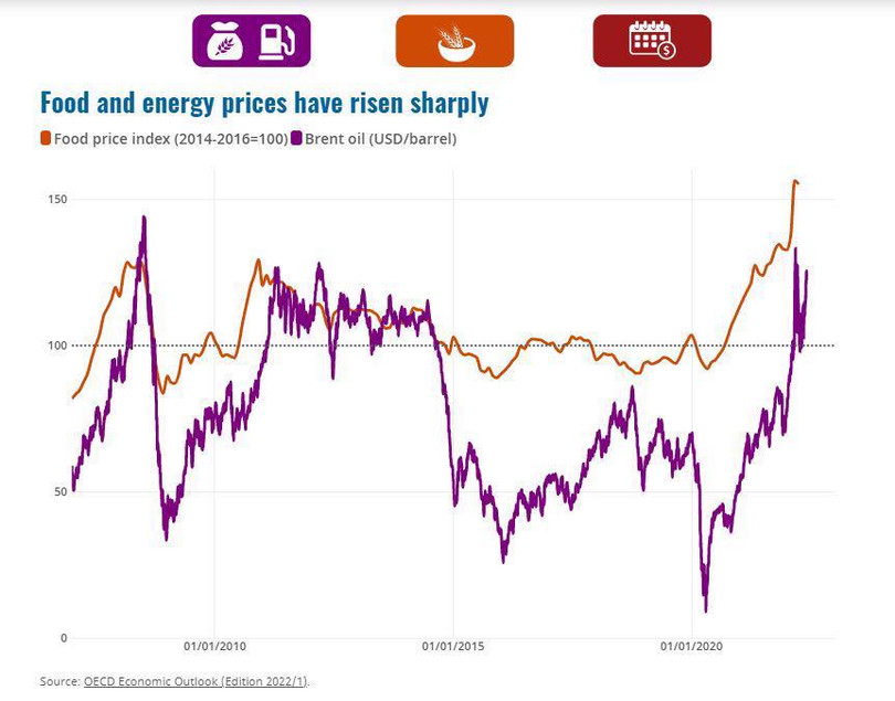 | OECD nâng dự báo lạm phát tại các nước thành viên. |