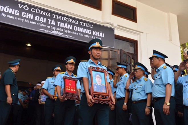 Tại lời điếu trong lễ truy đại tá Trần Quang Khải, trung tướng Nguyễn Văn Thanh (Chính ủy Quân chủng Phòng không không quân) cho biết, ngày 14//2016, máy bay Su-30 MK2 số hiệu 8585 đã gặp sự cố bất ngờ trên không khi đang làm nhiệm vụ. Đại tá Trần Quang Khải đã hy sinh trong khi thực hiện nhiệm vụ bay huấn luyện chiến đấu.