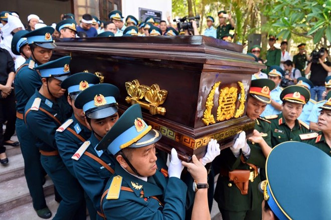 - Lễ viếng: 7h đến 9h30 ngày 20/6/2016 (nhằm ngày 16 tháng 5 năm Bính Thân) tại Nhà tang lễ Bệnh viện Quân y 4, Quân khu 4 (thành phố Vinh, Nghệ An). Lễ truy điệu 9h30 đến 10h.