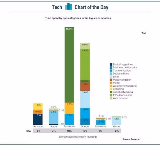 Biểu đồ mô tả thời lượng được người dùng chia sẻ cho ứng dụng đến từ 6 tập đoàn công nghệ hàng đầu thế giới