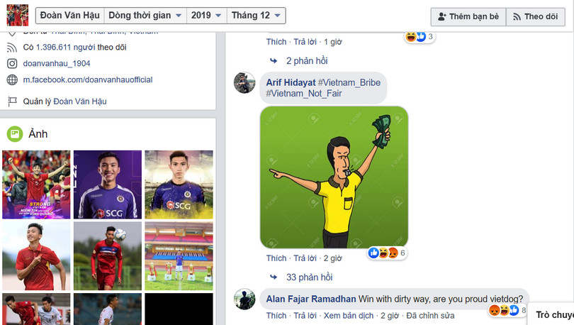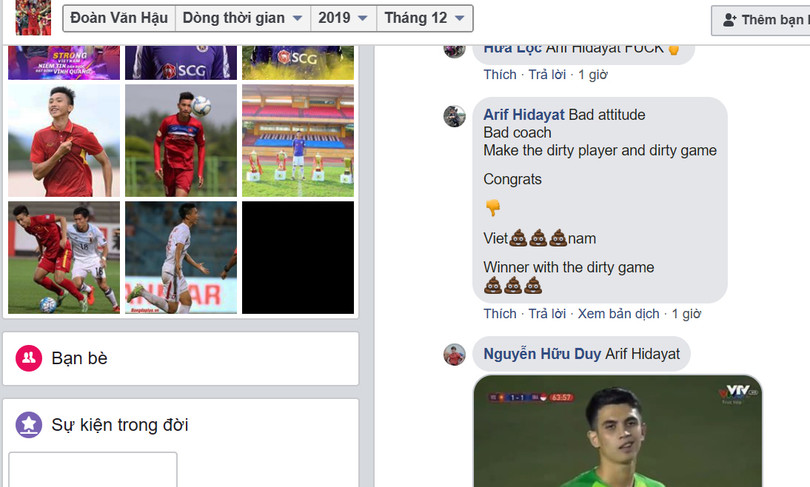 Ngay sau khi trận đấu giữa U22 Việt Nam và U22 Indonesia kết thúc, rất nhiều cổ động viên Indonesia đã vào fanpage của Văn Hậu để công kích cầu thủ này. Chúng ta đều biết Đoàn Văn Hậu đã có một trận thi đấu xuất sắc khi vô hiệu hóa toàn bộ các đường tấn công bên hành lang cánh phải của U22 Indonesia. Văn Hậu cũng đã ghi được 2 bàn thắng vào lưới Indonesia trong chiến thắng 3-0 của U22 Việt Nam. Nhưng cũng chính Văn Hậu là người đã gây ra chấn thương khiến đội trưởng Evan Dimas của Indonesia không thể thi đấu tiếp. Đây chính là nguồn cơn khiến cổ động viên Indonesia giận dữ bên cạnh nỗi bực dọc vì thua trận.