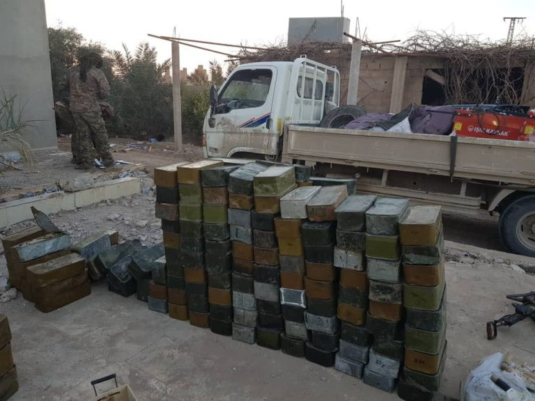 Trung tâm truyền thông SDF Press cho biết, có rất nhiều vũ khí được phát hiện, trong đó có 1 xe đánh bom tự sát (VBIED), 10 súng cối cỡ nòng 120mm, một khẩu pháo 122mm. Rất nhiều các loại vũ khí bộ binh cùng vô số đạn dược các cỡ nòng, hàng chục súng máy các loại.