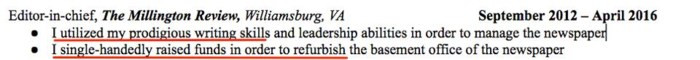 "Những người dự tuyển cần phải hiểu rằng bắt đầu một câu với ‘chịu trách nhiệm về' cho người tuyển dụng biết về những yêu cầu của công việc, nhưng nó không chứng tỏ việc ứng cử viên thực sự làm những nhiệm vụ đó và liệu họ có thành công trong việc thực hiện những công việc đó hay không. Đừng lười biếng: Dành thêm vài phút để nêu rõ những gì bạn đã đạt được - không phải những gì bạn mong đợi sẽ đạt được", Nicolai cho biết.