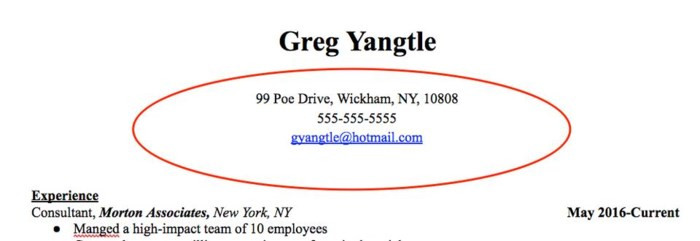 Bạn không nên dành ra đến bốn dòng để liệt kê tên, địa chỉ, email và số điện thoại của mình.