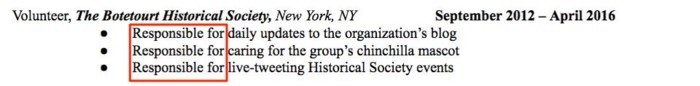 Đây là một lỗi ngớ ngẫn nữa cô bắt gặp rất nhiều lần trong các lý lịch công việc.