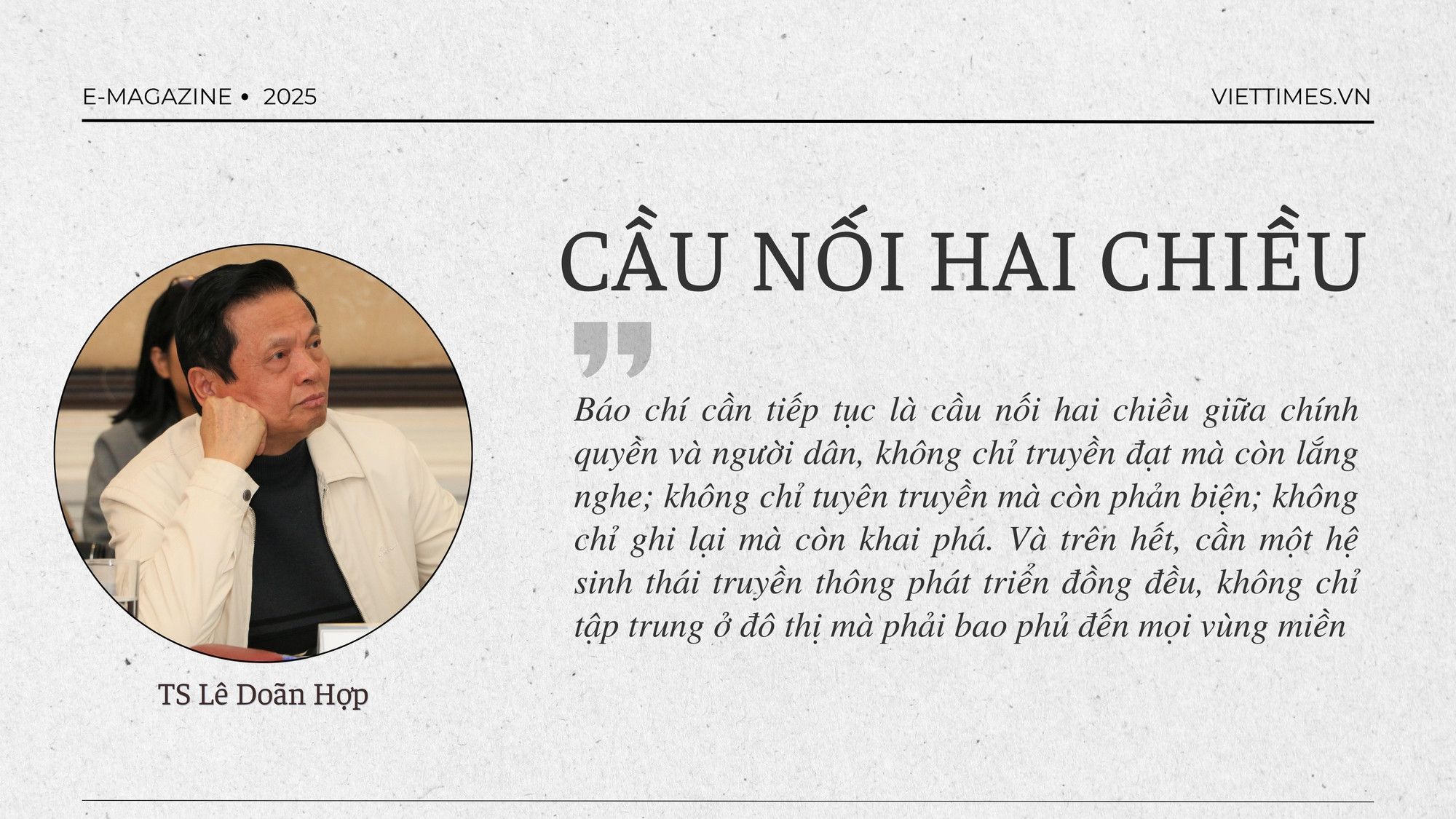 Báo chí cần tiếp tục là cầu nối hai chiều giữa chính quyền và người dân, không chỉ truyền đạt mà còn lắng nghe; không chỉ tuyên truyền mà còn phản biện; không chỉ ghi lại mà còn khai phá. Và trên hết, cần một hệ sinh thái truyền thông phát triển đồng đều, không chỉ tập trung ở đô thị mà phải bao phủ đến mọi vùng miền.