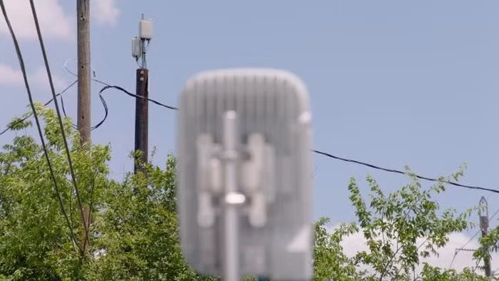 Một trạm phát sóng băng rộng 5G loại nhỏ của Verizon được lắp đặt để phát sóng 5G phục vụ các cộng đồng cư dân tại thành phố Houston.