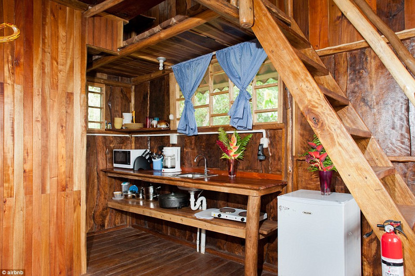 Nhà trên cây ở Cooper, Alajuela, Costa Rica với giá 76 bảng/đêm,đầy đủ tiện nghi với phòng ngủ, nhà bếp và nhà tắm.