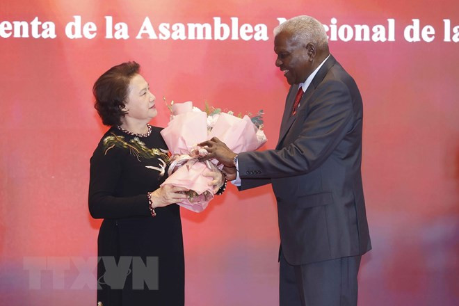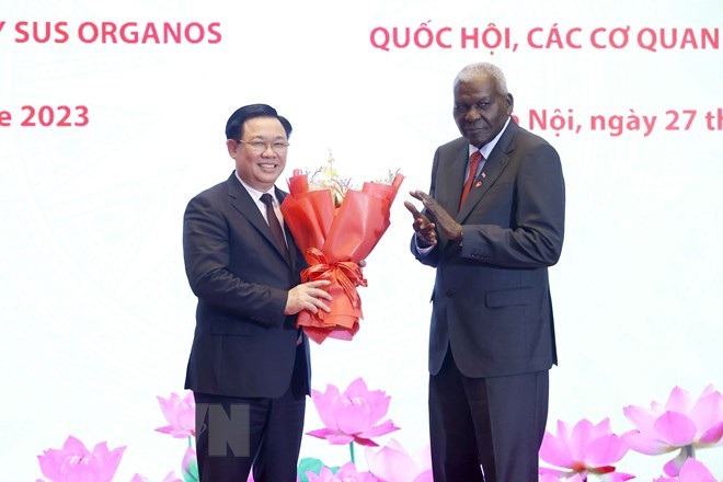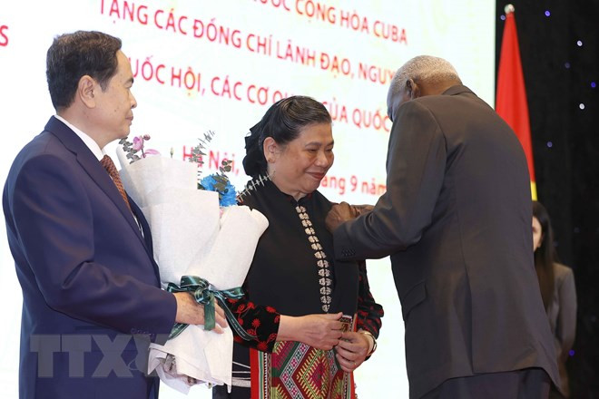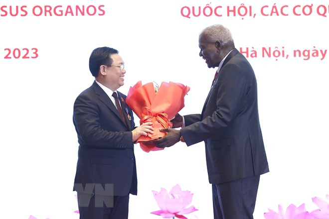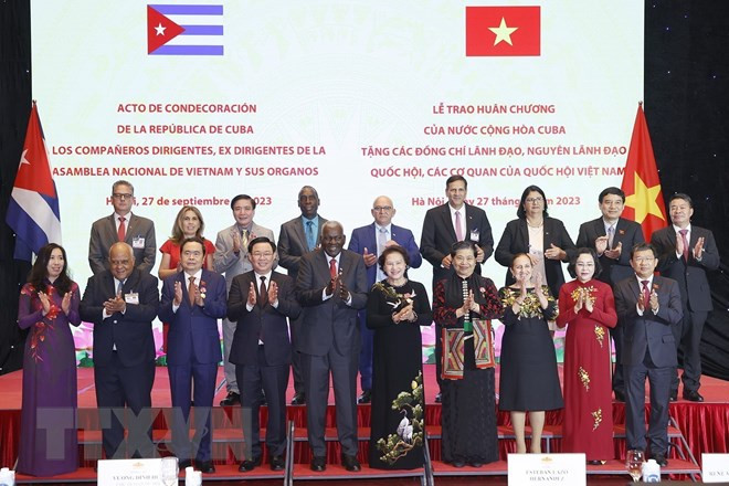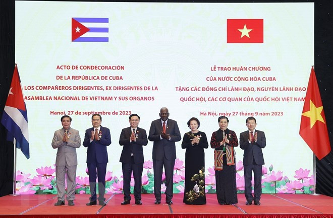 Tại buổi lễ, Chủ tịch Quốc hội Cuba Esteban Lazo Hernandez trân trọng trao Huân chương Carlos Manuel de Cesesspespeedes tặng Chủ tịch Quốc hội Vương Đình Huệ; trao Huân chương Ana Betancour tặng nguyên Chủ tịch Quốc hội Nguyễn Thị Kim Ngân; trao Huân chương Đoàn kết tặng Phó Chủ tịch Thường trực Quốc hội Trần Thanh Mẫn và nguyên Phó Chủ tịch Thường trực Quốc hội Tòng Thị Phóng.