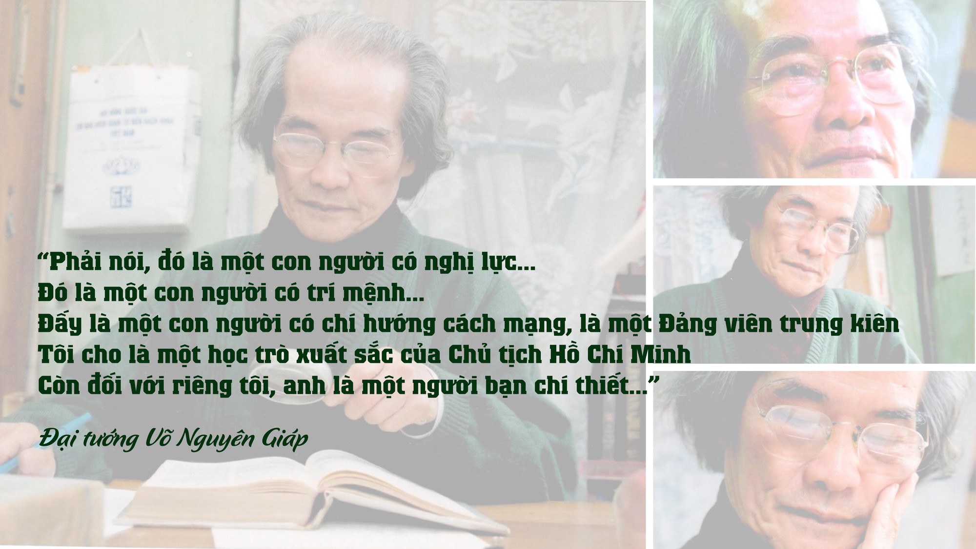 Về nhà văn Đại tướng Võ Nguyên Giáp từng nói: “Phải nói, đó là một con người có nghị lực… Đó là một con người có trí mệnh. Mỗi lần anh gặp tôi thì tôi rất cảm động, bởi vì ngồi nói chuyện về Bác Hồ nhưng phải cố gắng vì vết thương lại đau. Có khi cầm bút viết được, có khi không… Đấy là một con người có chí hướng cách mạng, là một đảng viên trung kiên. Tôi cho là một học trò xuất sắc của Chủ tịch Hồ Chí Minh… Còn đối với riêng tôi, anh là một người bạn chí thiết…".