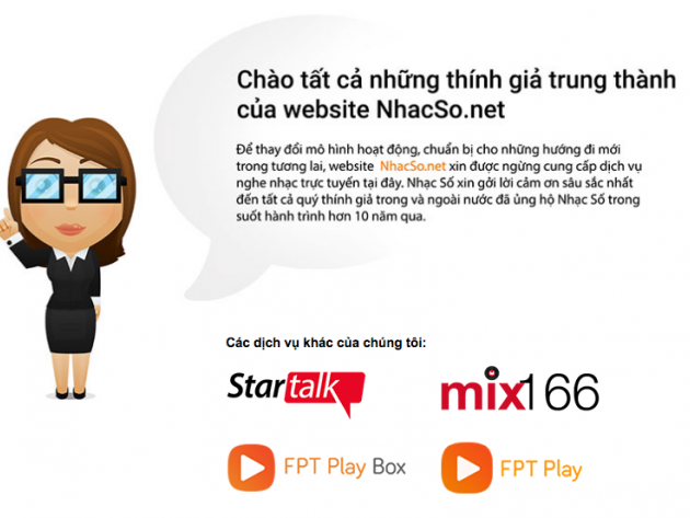 Sáng nay, khi người dùng truy cập vào địa chỉ nhacSO.net sẽ nhận được lời chào từ biệt cùng dòng thông báo trên giao diện, khẳng định: "Để thay đổi mô hình hoạt động, chuẩn bị cho những hướng đi mới cho tương lai, website nhacSO.net xin được dừng cung cấp dịch vụ nghe nhạc trực tuyến tại đây. Đồng thời, Nhạc số cũng gửi lời cám ơn sâu sắc nhất đến tất cả thính giả trong và ngoài nước đã ủng hộ Nhạc số trong suốt hơn 10 năm qua".
