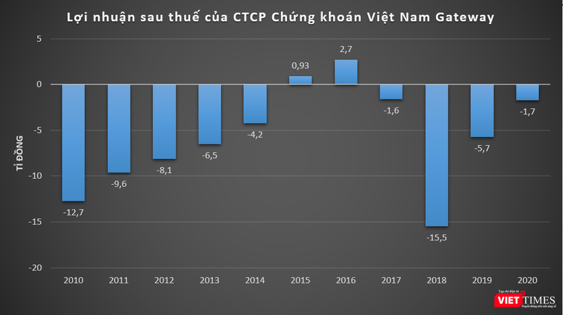 Tính đến ngày 31/12/2020, khoản lỗ luỹ kế của Chứng khoán Việt Nam Gateway đã lên tới 85,4 tỉ đồng. Quy mô tổng tài sản giảm xuống chỉ còn hơn 25 tỉ đồng.