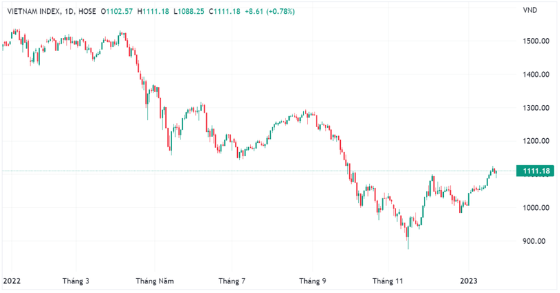 Kết phiên giao dịch, VN-Index tăng 8,61 điểm (+0,78%) lên 1.111,18 điểm. Thanh khoản trên sàn HOSE giảm nhẹ so với phiên hôm trước với giá trị giao dịch khớp lệnh đạt 11.800 tỉ đồng, song vẫn ở mức cao so với trung bình 10 phiên.