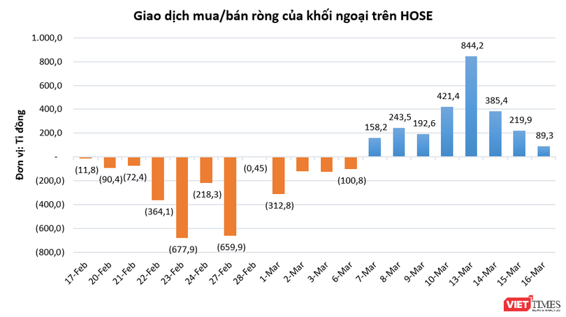 Khối ngoại vẫn duy trì nhịp mua ròng trên sàn HOSE với giá trị 89,3 tỉ đồng, tập trung vào nhóm cổ phiếu thép (HSG, HPG), bất động sản (VRE, HVM) và tài chính – ngân hàng (VND, SHB).