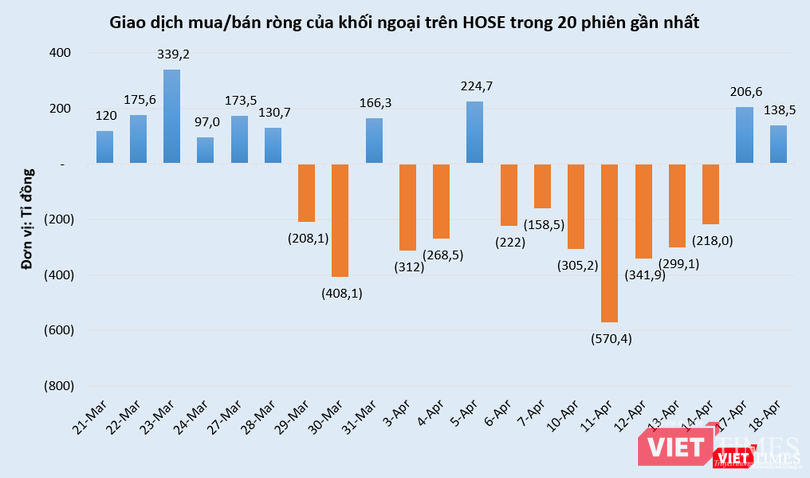 Khối ngoại mua ròng phiên thứ hai liên tiếp trên sàn HOSE với giá trị mua ròng đạt 138,5 tỉ đồng, tập trung chủ yếu vào các mã cổ phiếu HPG, VPB, VHM, PNJ, MSN.